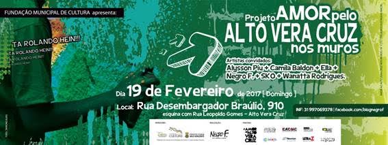 A ação, que conta com apoio da Newton Paiva, faz parte do projeto “Amor pelo Alto Vera Cruz nos Muros”, idealizado pelo artista urbano Negro F., que busca resgatar e fortalecer a autoestima comunitária através da valorização da identidade cultural local.