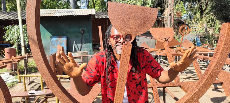 Quem passa pelo Centro de Cultura Popular e Tradicional Lagoa do Nado (R. Min. Hermenegildo de Barros, 904 – Itapoã, Belo Horizonte – MG) já percebe a movimentação de pessoas e objetos metálicos. Trata-se das obras do multiartista Babilak Bah, que inaugura neste domingo, 21 de julho, às 10h, a sua mais recente exposição, intitulada “Oguns Kabecilês – Enxadigma”. A instalação, composta por 10 esculturas de ferro de até três metros de altura, é viabilizada pelo Fundo Municipal de Cultura de Belo Horizonte e ficará em exibição por um ano, proporcionando uma experiência única de interação e reflexão histórica.